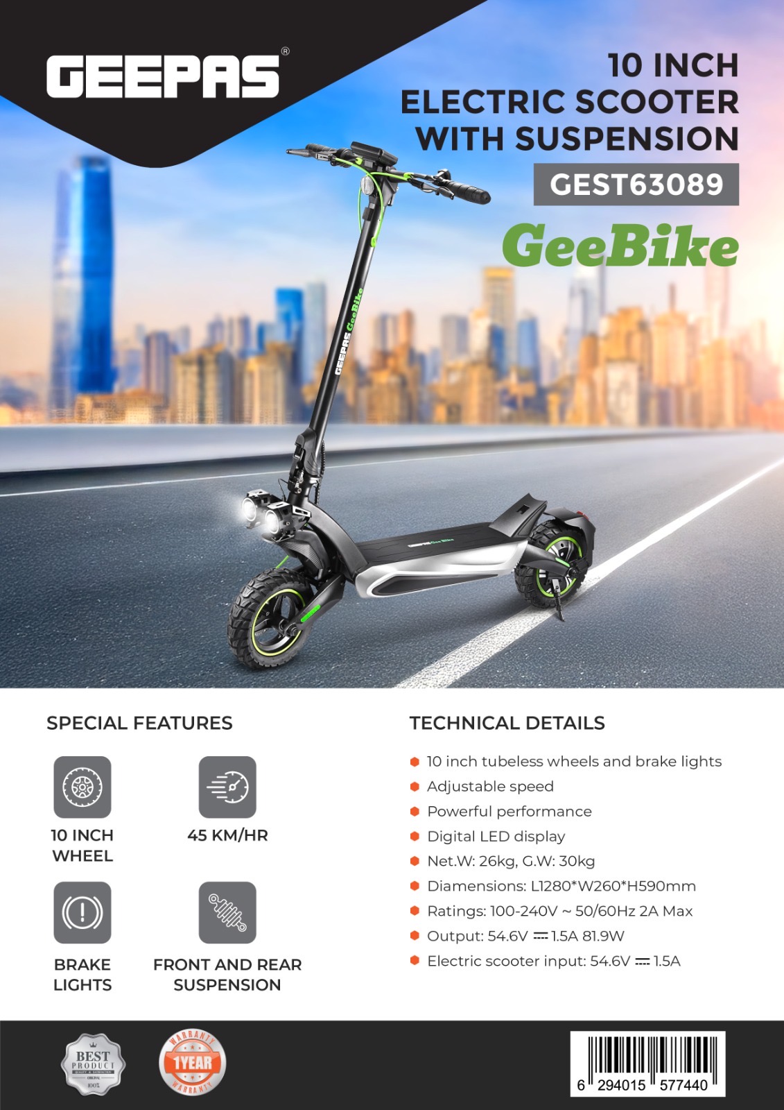 اسکوتر برقی جی پاس مدل GEST63089 قدرت۷۵۰وات حداکثر سرعت ۴۵کیلومتر بر ساعت